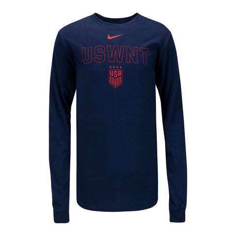 Youth Nike USWNT Outline Navy Long Sleeve Tee