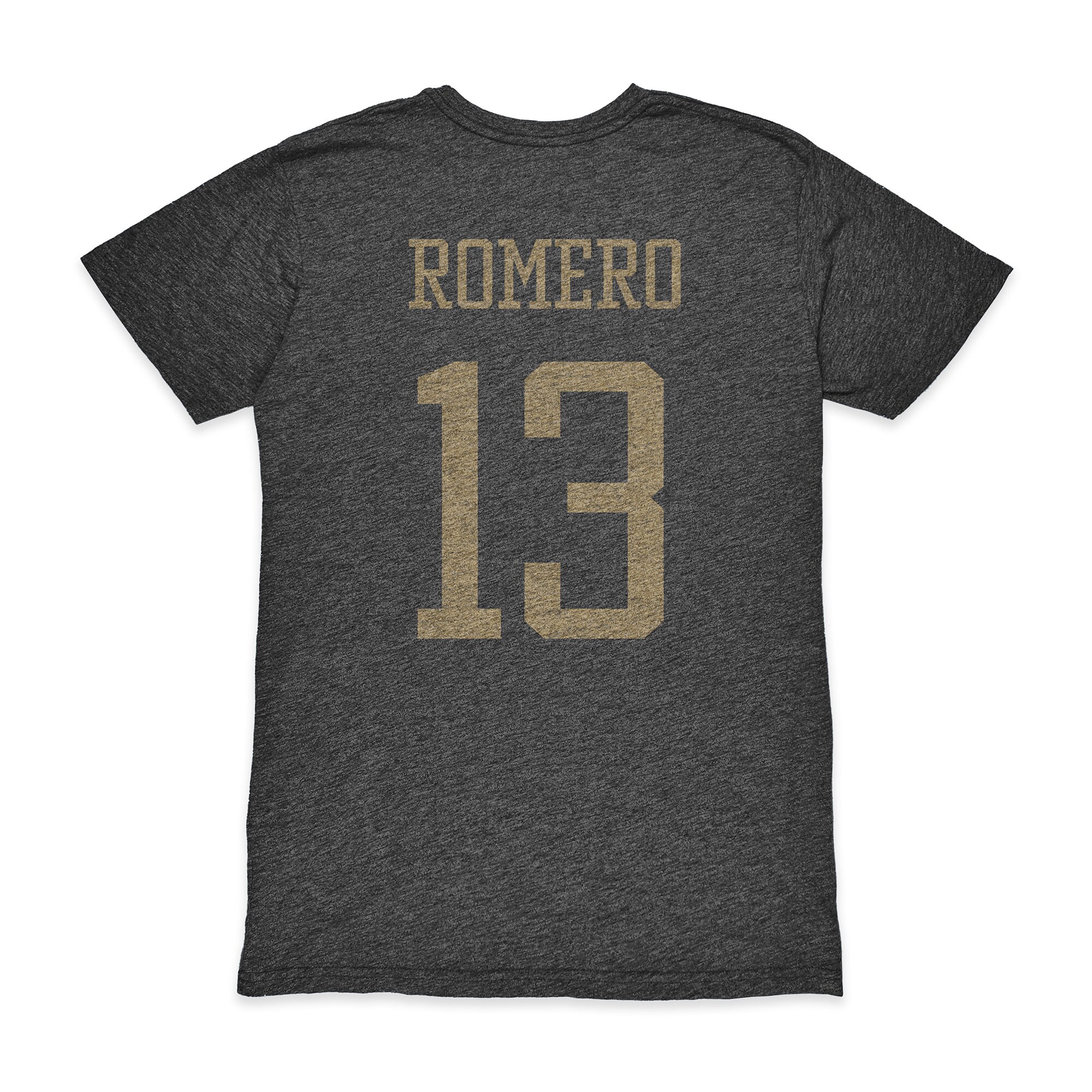 • Distressed screen print of the player’s name and number on the back