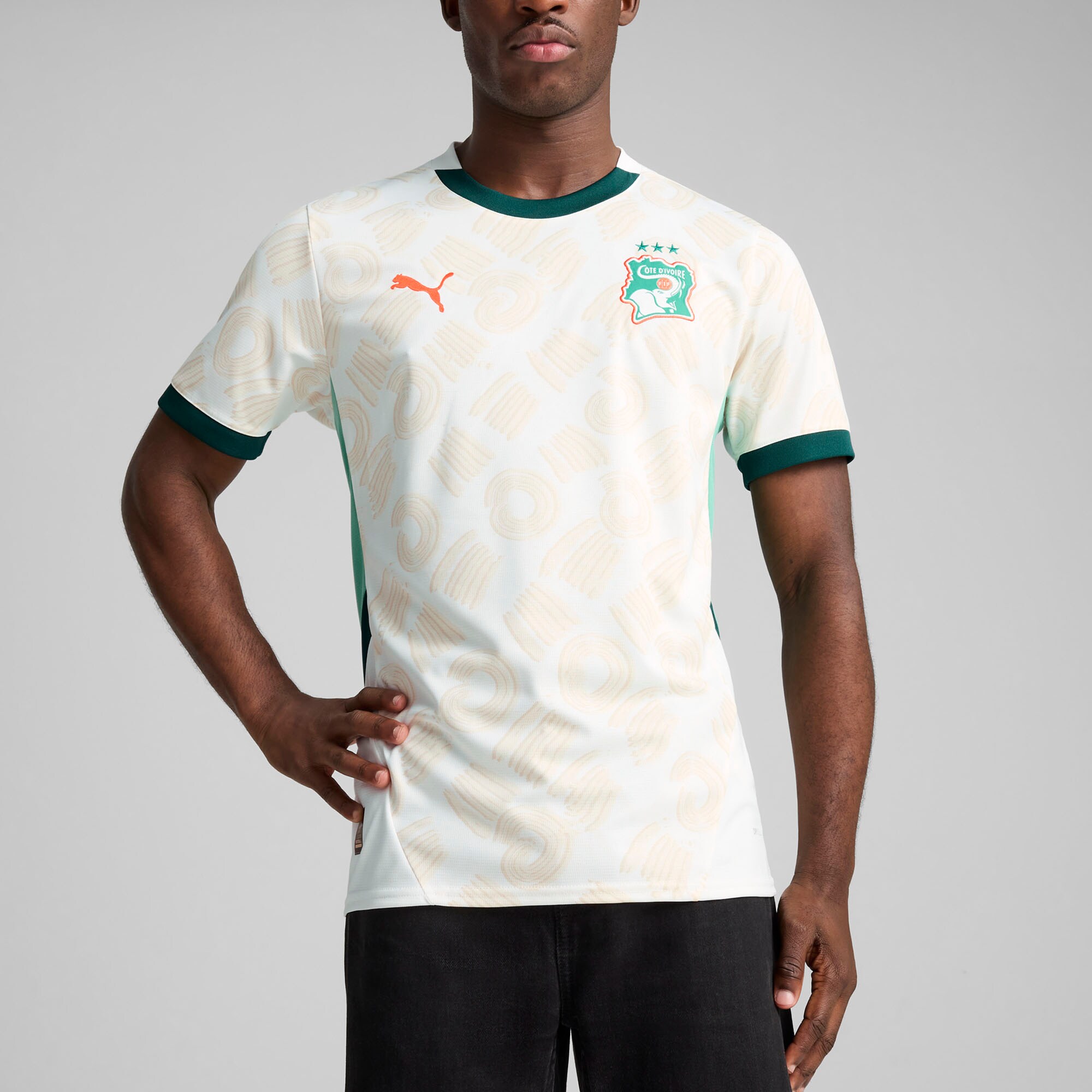 • Show your support for the Ivory Coast National Team with this 2025 Away Replica Jersey from Puma. It features heat-sealed graphics that showcase your team pride in style. Whether you're in the stands or playing a pickup game with friends, this jersey keeps you looking and feeling cool while sporting your Ivory Coast National Team fandom.