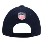 • The New Era Kids USMNT 9FORTY The League features the U.S. Soccer Logo on the front panels in embroidery. Additional elements of this cap include the team logo embroidered on the cap rear above the strap closure.