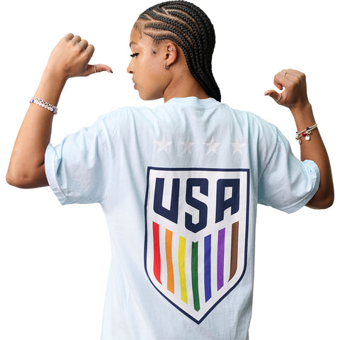 • Join us in celebrating love all year long with U.S. Soccer! Embrace the spirit of Pride Month with our Love is Love tee crafted to honor diversity, inclusion, and unity. Made with care and designed to stand out, wear this tee with pride and join us in celebrating love and acceptance. Let your pride shine everywhere with U.S. Soccer.